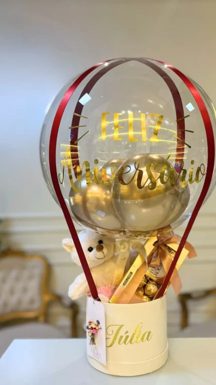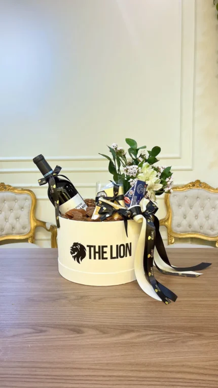 Box caixa grande personalizada, vinho Naturelle, ramalhete de flores e caixa ferrero rocher com 8un.
