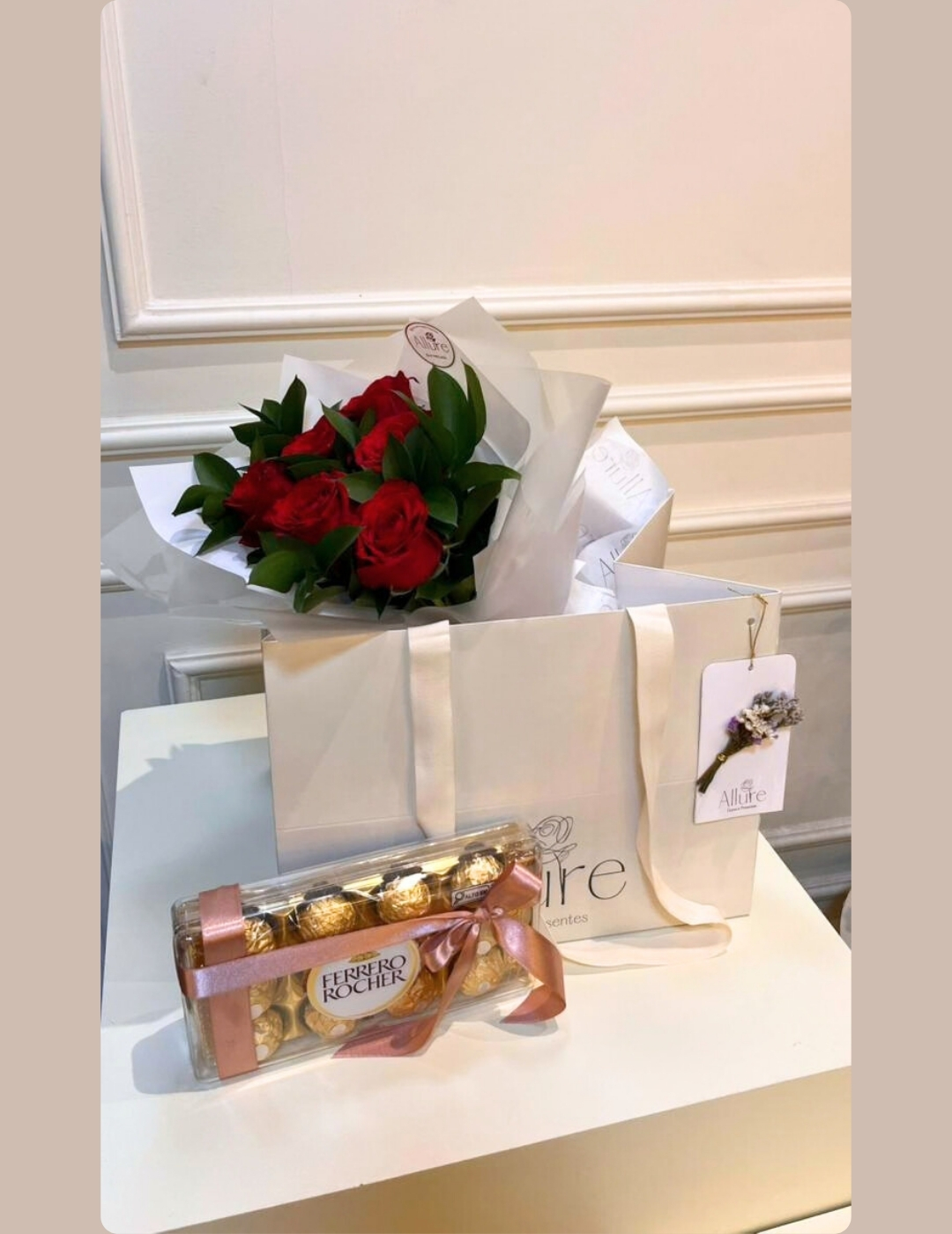 Box personalizada com buquê, chocolate e Chandon