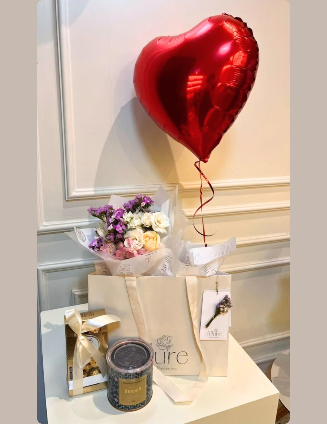 Escolha entre balões, buquês, chocolates e biscoitos – monte o seu presente com muito amor