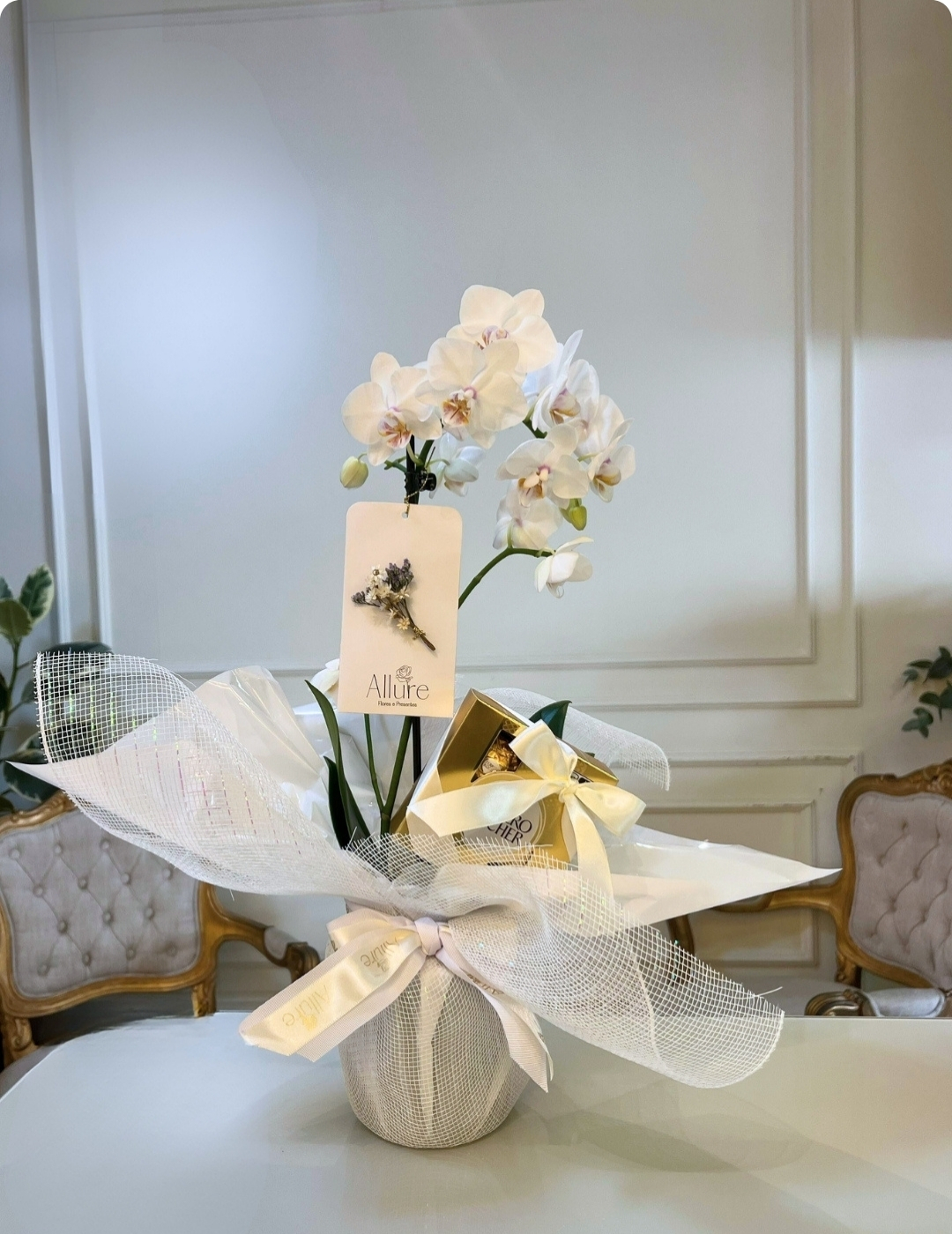 Orquídea Allure média com caixinha de Ferrero Rocher 4 un.